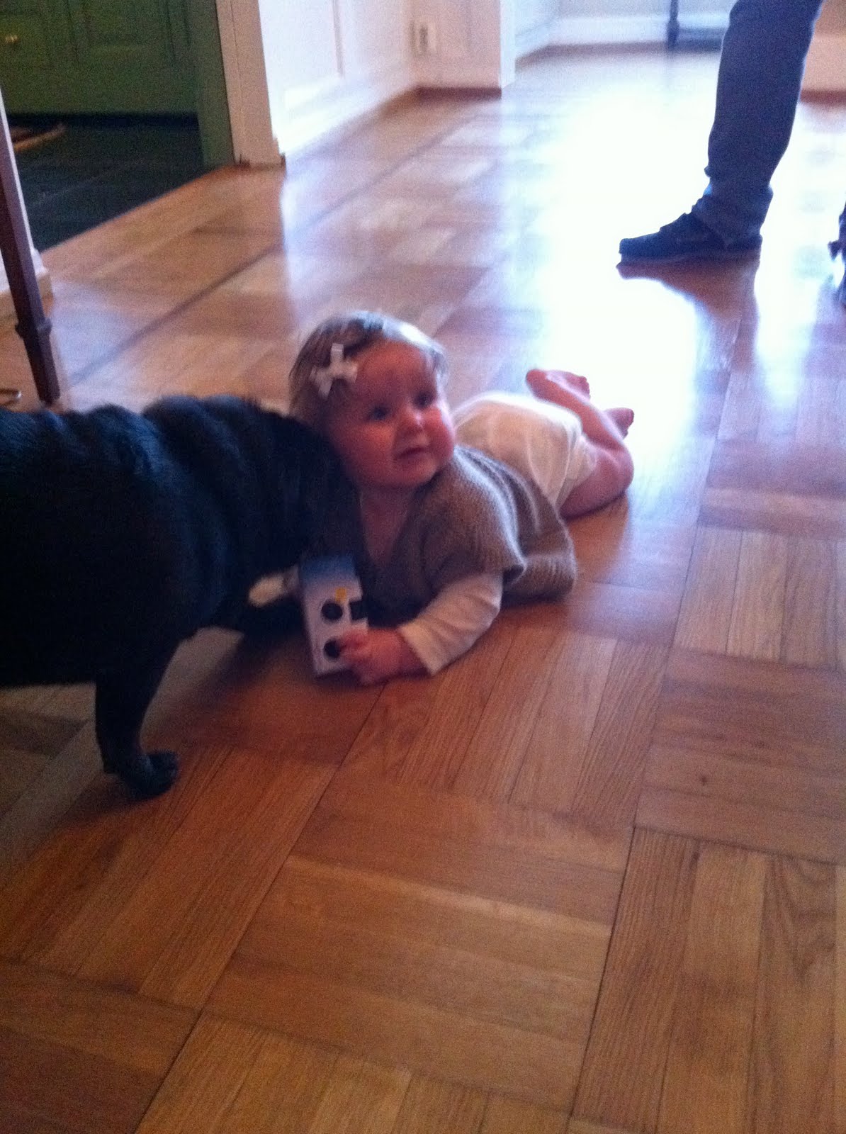 Ettermiddagen og kvelden har vi tilbrakt hos bestefar i Bærum. Det var forresten mitt første møte med lørdagsbiffen - uten særlig suksess. Ikke helt min smak må jeg si. Utenom det var det skikkelig stas. Jeg lekte med onkler og tante, og ikke minst ble jeg endelig venn med vov voven. Og som dere allerede vet, jeg greide ENDELIG å komme meg fremover. Jippi!